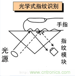 光學(xué)傳感器的發(fā)展歷史可能是最久的了,已經(jīng)有30年的歷史了。實(shí)現(xiàn)的原理也是最簡單的。 它主要是利用光的折攝和反射原理,將手指放在光學(xué)鏡片上,手指在內(nèi)置光源照射下,光從底部射向三棱鏡,并經(jīng)棱鏡射出,射出的光線在手指表面指紋凹凸不平的線紋上折射的角度及反射回去的光線明暗就會(huì)不一樣。用棱鏡將其投射在電荷耦合器件上CMOS或者CCD上,進(jìn)而形成脊線(指紋圖像中具有一定寬度和走向的紋線)呈黑色、谷線(紋線之間的凹陷部分)呈白色的數(shù)字化的、可被指紋設(shè)備算法處理的多灰度指紋圖像。